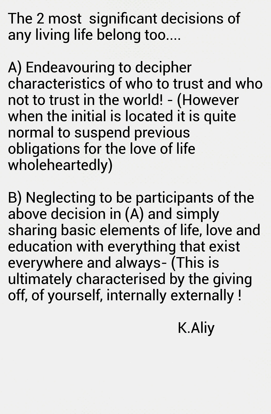No1. Always Trust Your Heart Over Any Voice, Whether that be even my words, your fathers words, your mothers word, your doctors words, your spiritual advisors words, Any spiritual/rigorous religious book or person/s… never ever actuate their advocacy if it does not agree with your heart?!