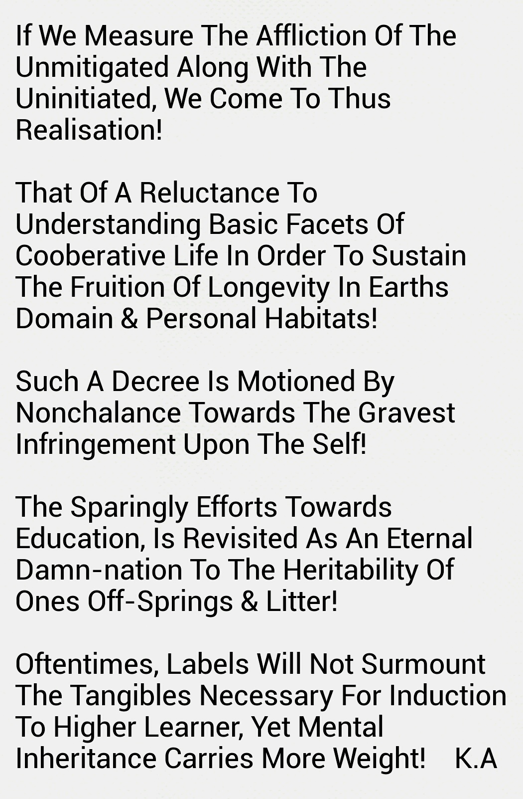 Some folks are so better off, that the requirements of learning, is not as detrimental to there progression, as they have literally, a plethora of contingencies via fortunate circumstances!ย (We are NOT prince charles, Prince Harry or any other benevolent successor to a mighty benevolent heir or empire!)