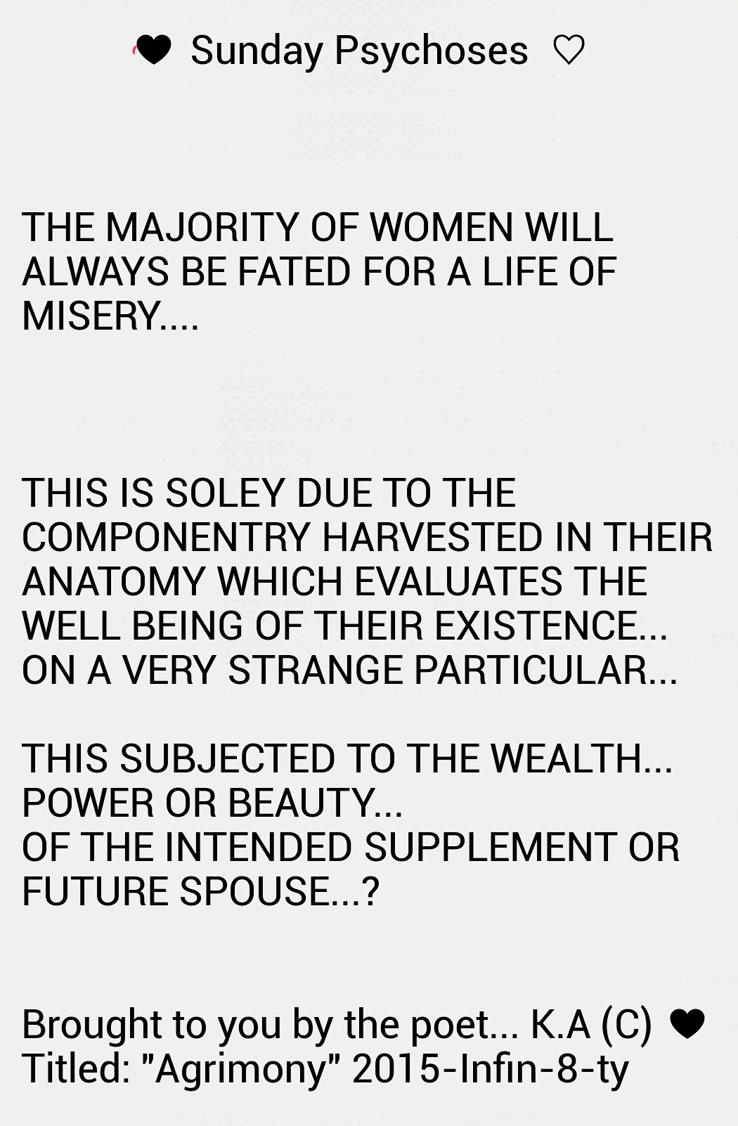 Women in general.. would be better off. .. if ย they did not subject their personal prosperity to Good looks… Power… Money. … Etc…