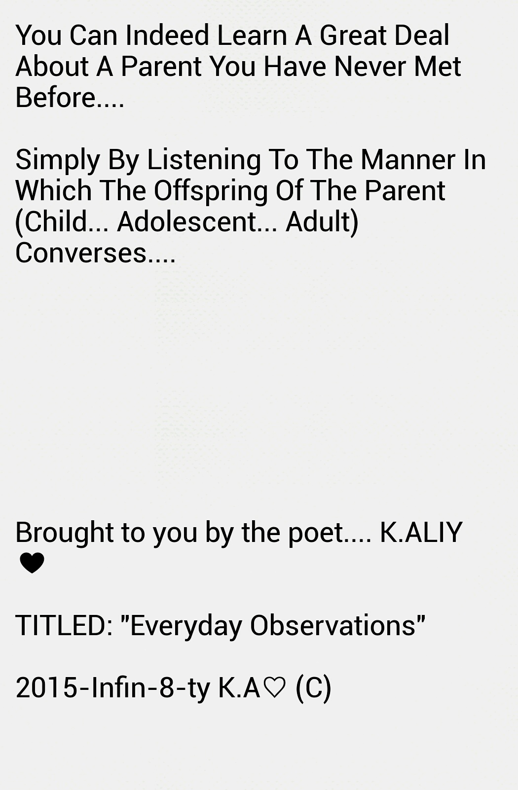 Watching the infant in the waiting room that day, bequeathed my cerebrum of the ceremony which attributed awareness. … both parents where indeed happy that their child was learning new things… Indeed it would have to.. in order that it survive adequately in the world… as life would get a lot harder when parents were no longer around to deliver the spoonfuls of sweet good stuff…