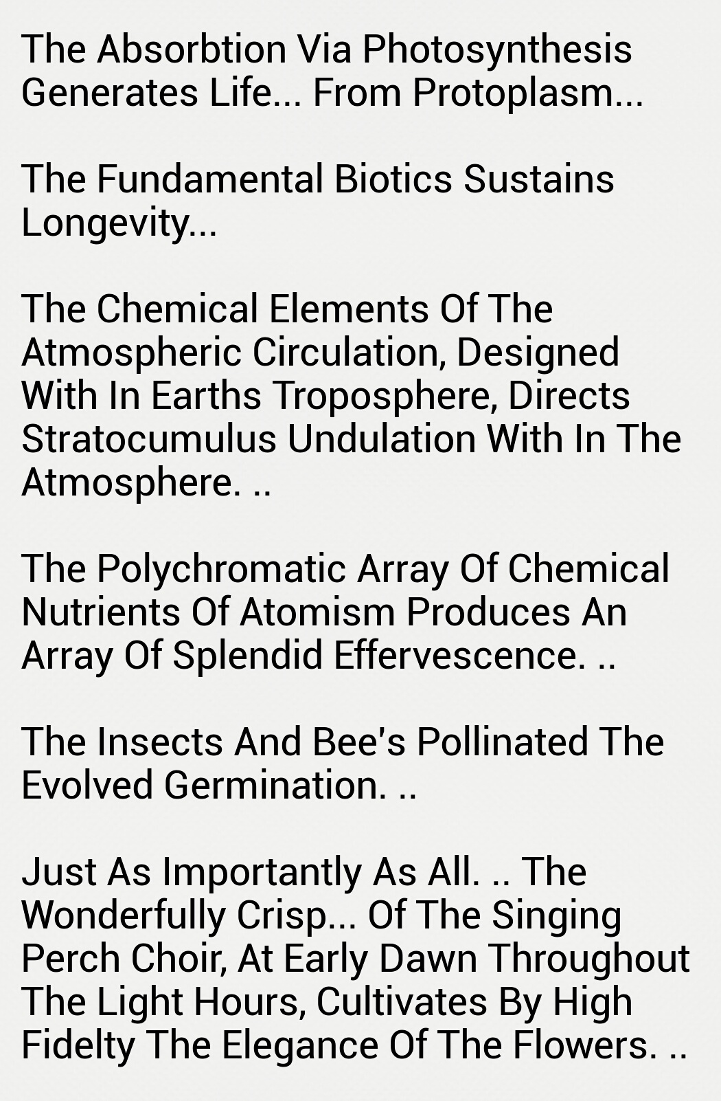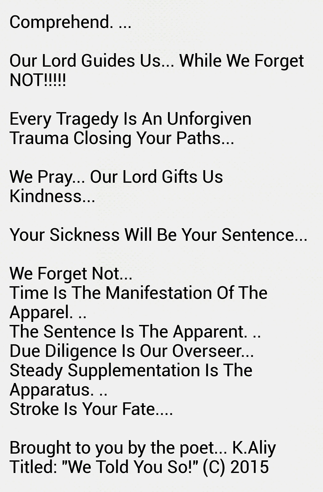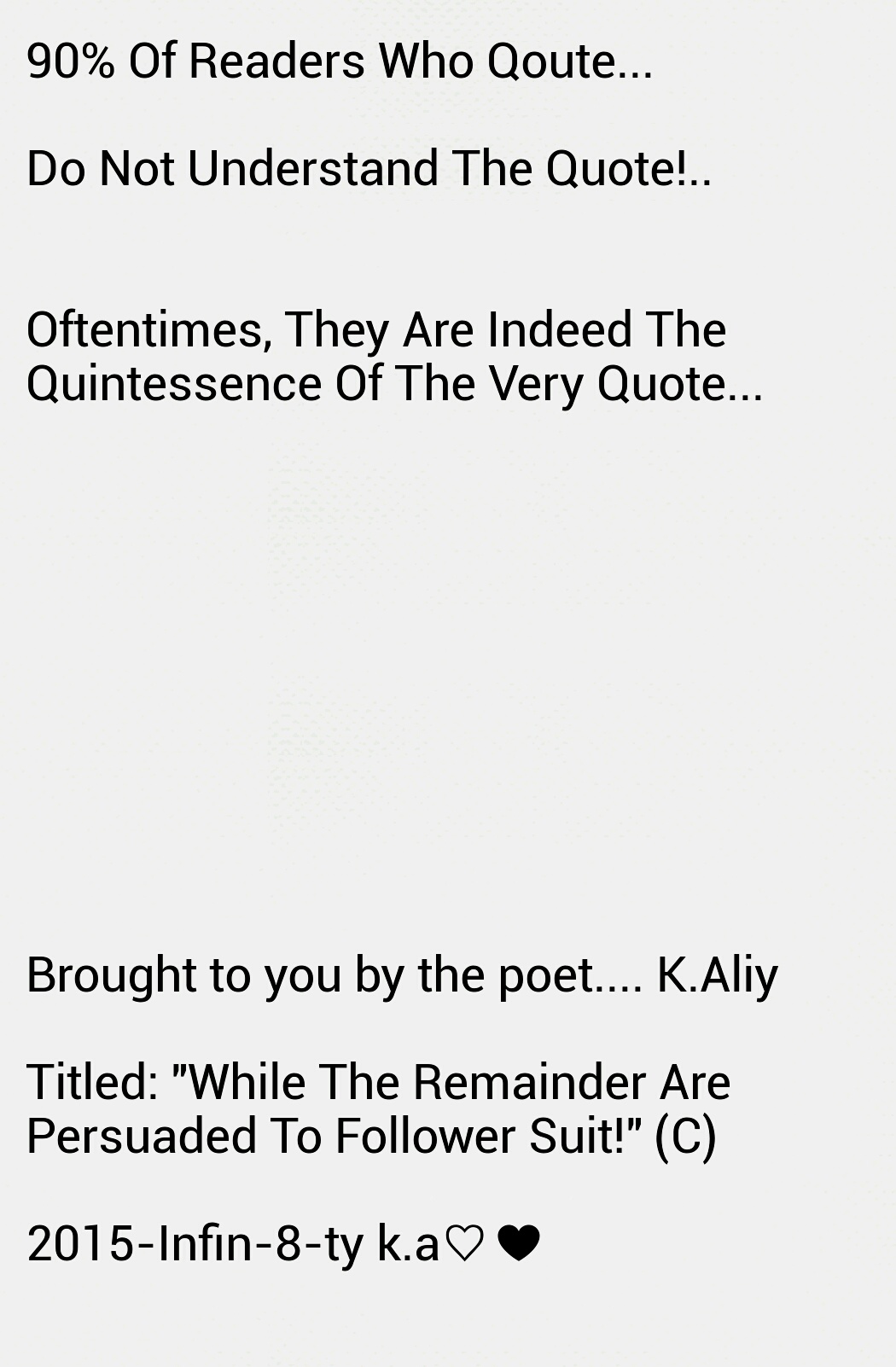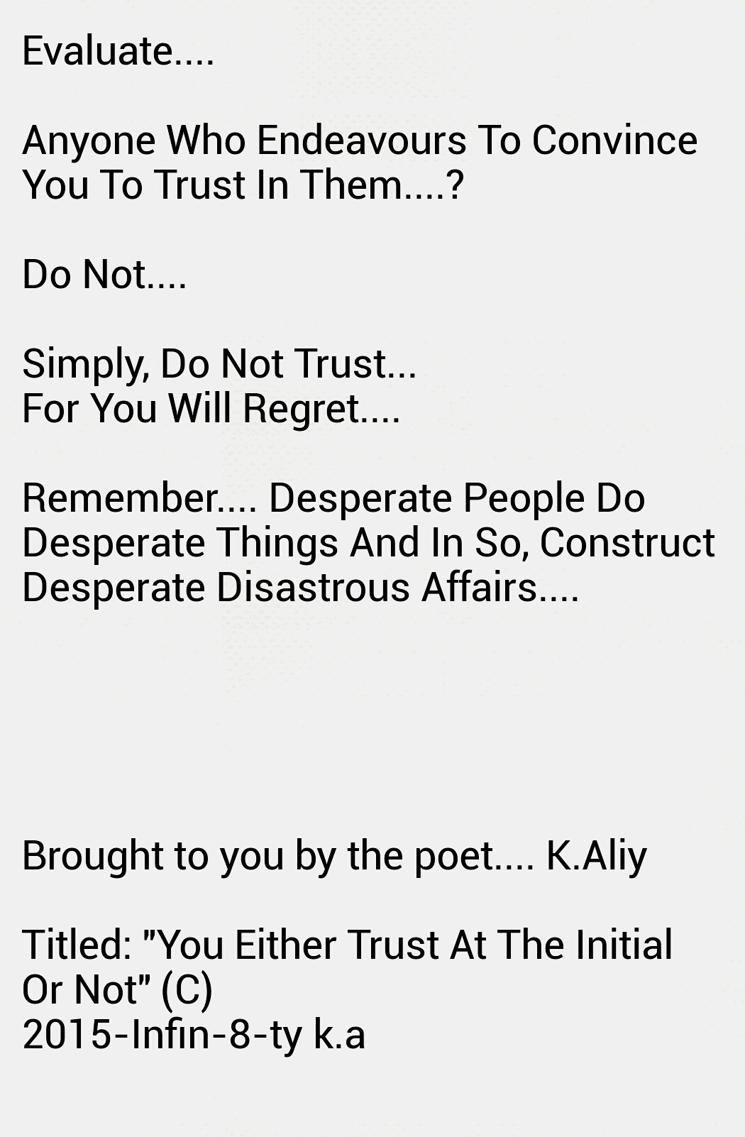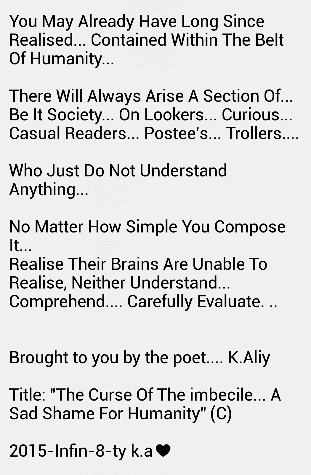 Such as this wedging, which ever so slowly releases toxic fumes of bilious misery into the atmospheric metrication of the zone inhabited and effected by this history. All who exist and who have fought and searched for shelter in thus vicinity, often lose against any sustenance of victory and longevity of harmony!
