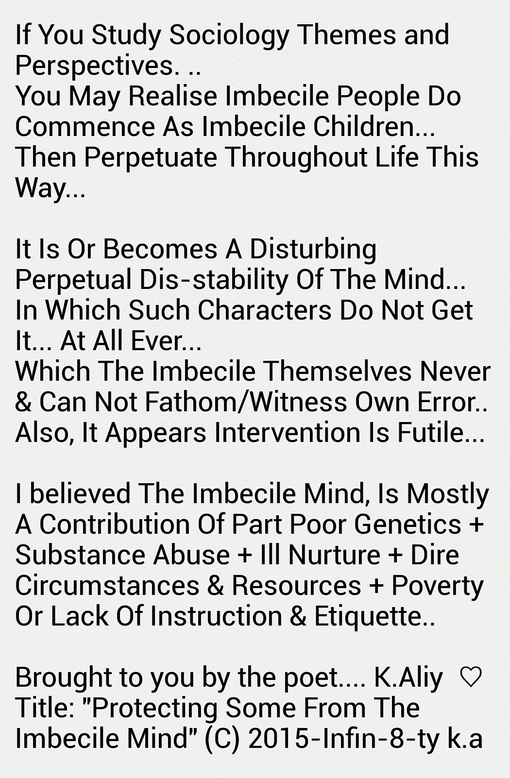 The poorer the nation, can often be realised as the more destructive… (Internally-externally). There exist always the objection to the rule… in the instance of such objective reservoirs and hostile hosts. Many folks from certain identities go against the grain of the normal mass of their social casting. .. You will have long envisaged or realised the black afro Caribbean communities have whole heatedly evolved as a 100% evil organism upon the planet earth. This will take severe honesty and strength from with in you to reference the necessary Inquisitorial examination with total honesty, rather than fear of a possible reference of prejudices and violations against you by defamers and propagators!