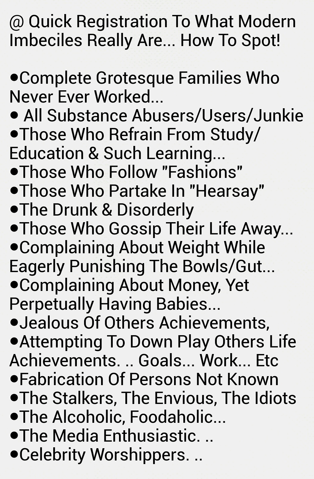 The list endeavours on and on and on and on and on… .. . Which has blighted the nation in total and all inhabitants, who naively enter the shores of misery and accommodations above the original buried hosts!