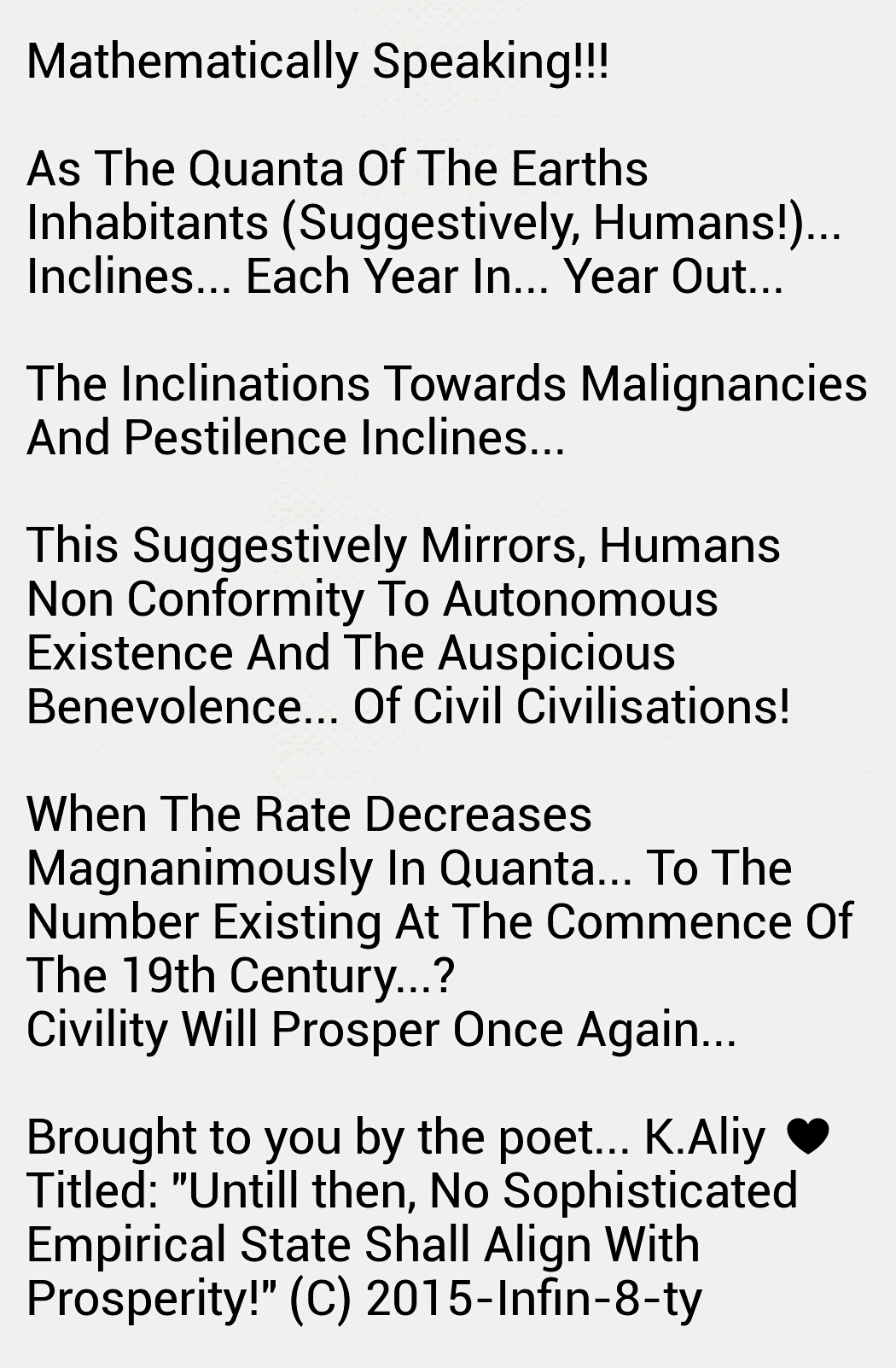 ย ย To truly realise fairly, the magnitude of the pulse disturbances and wave destruction by non rested entities, who seek redemption… One has to look no further than other nations who endured extreme demilitarisation after the succession of national sovereignty and globalisation. .. The Greek empire insured the magnitude of equivocally the greatest nation to exist under democracy. Yet this extraordinary engineering feat, aided by mathematicians… architecture… perpetual ย democratising… investment of investigation, inquisition and the education reform second to none up until the period of the Greek renaissance! Yet two whole millennia onwards has seen an unforgettable unfortunate unforeseen circumstance bequeathed by such a past future prominence.