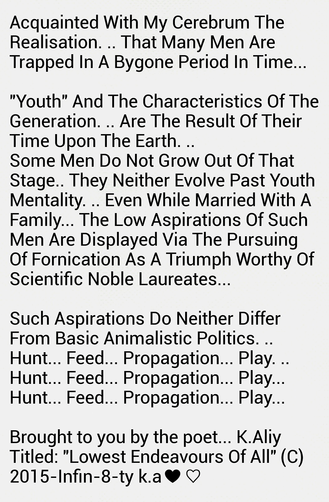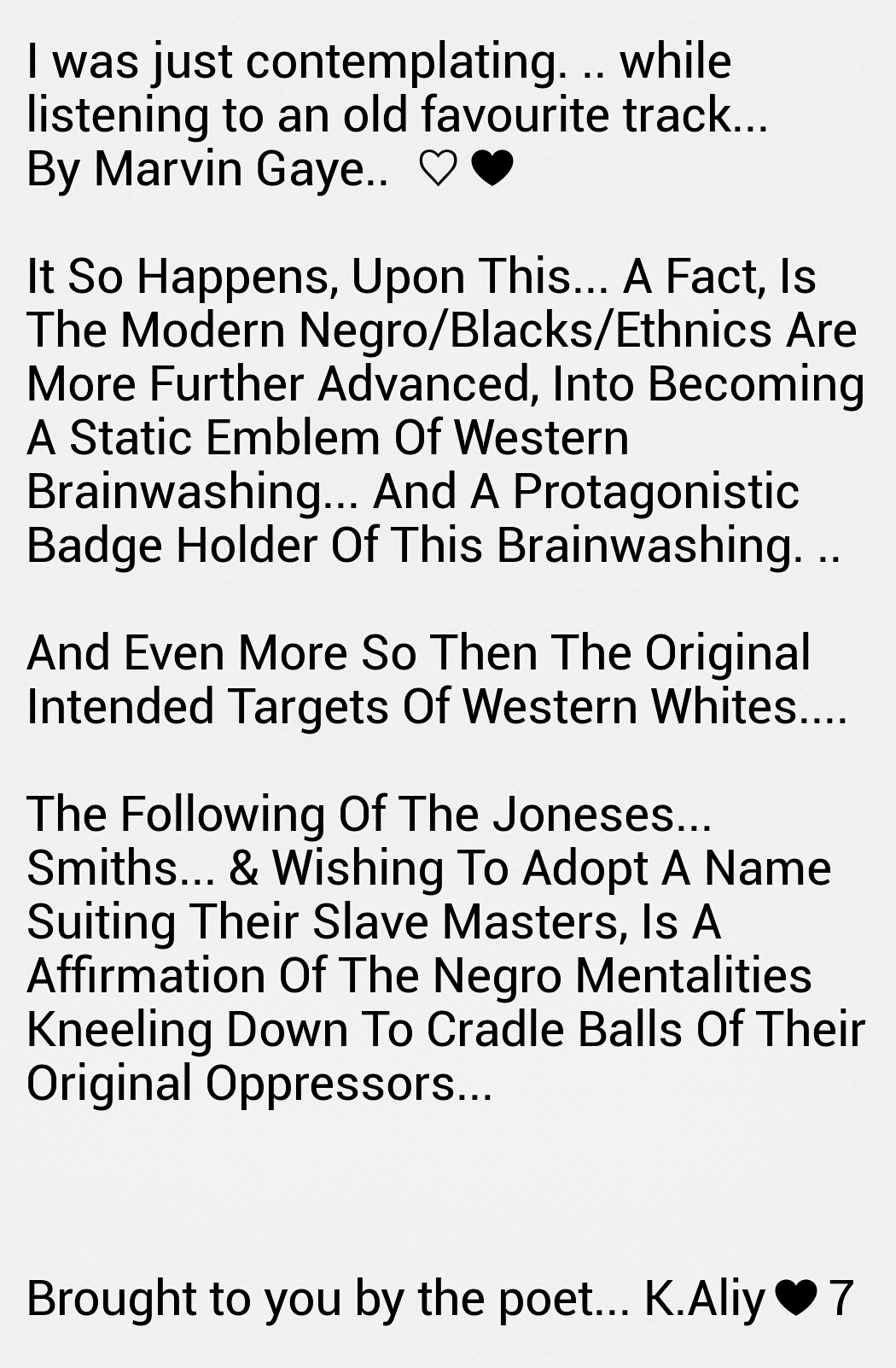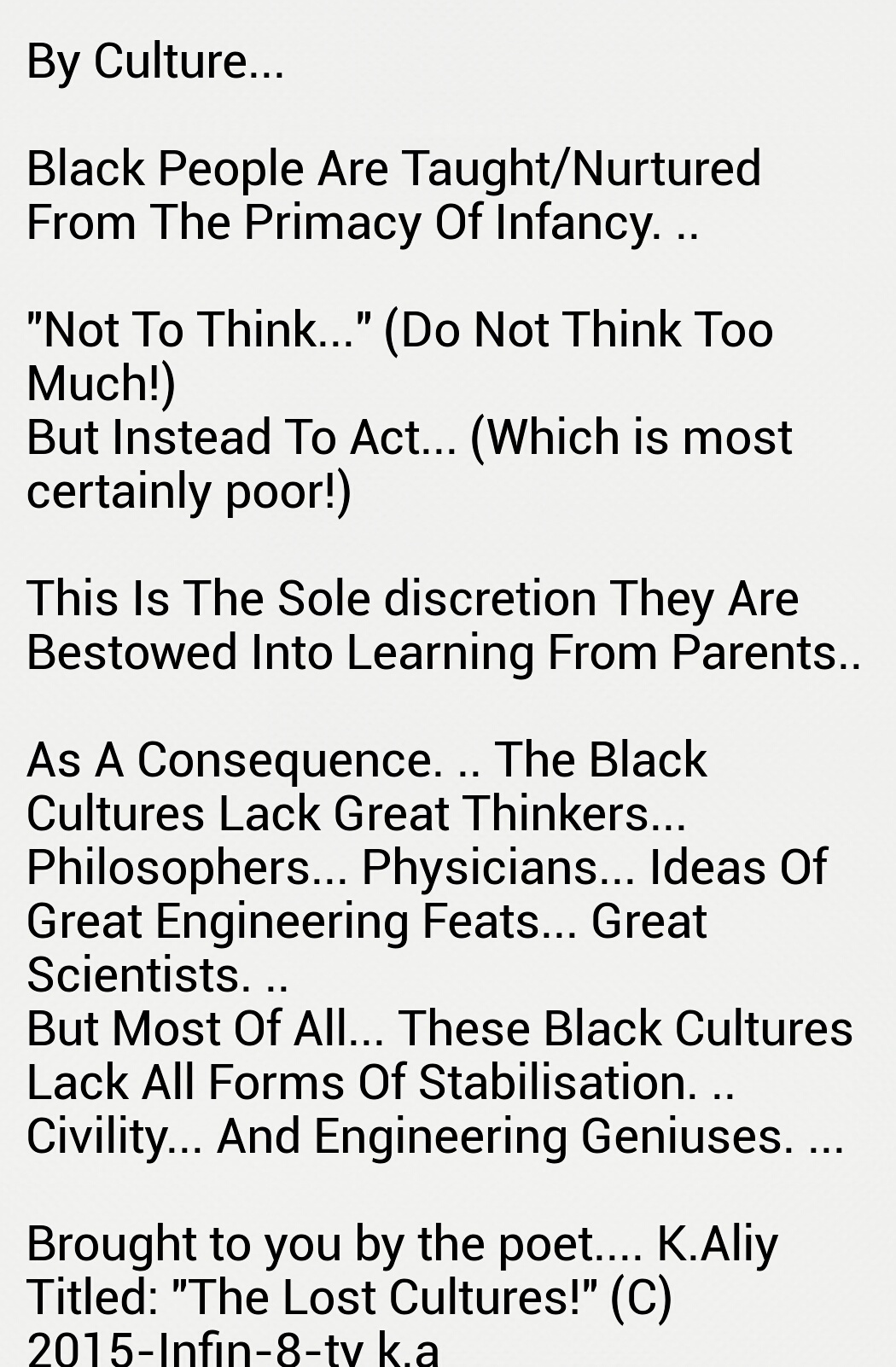 For that which the early primitive homo sapiens of AFRICAN epochs… commenced rearranging amongst one another, is folkloric legend…