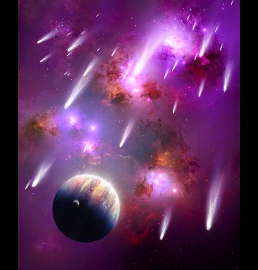 Niburu which enters our solar system every few thousand years, via it’s large orbit causes great destruction amongst various orbits in our galaxy.